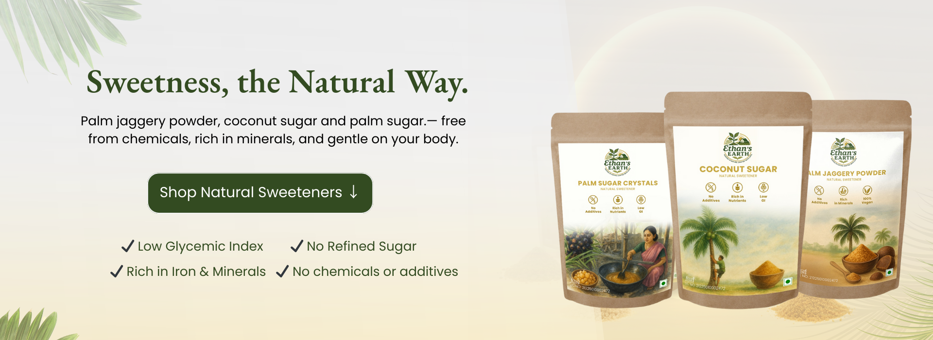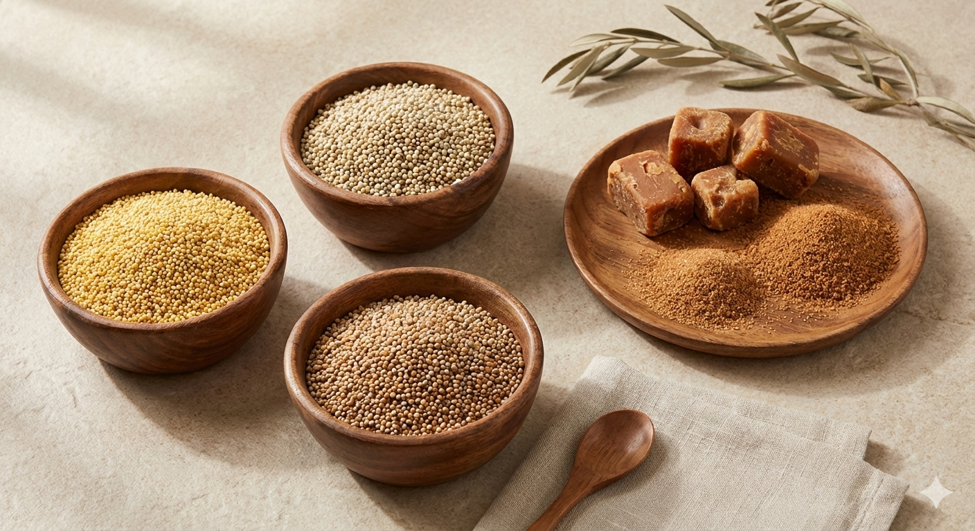 Our natural sweeteners and ancient millets are carefully chosen to nourish your body the way nature intended — clean, gentle, and wholesome.